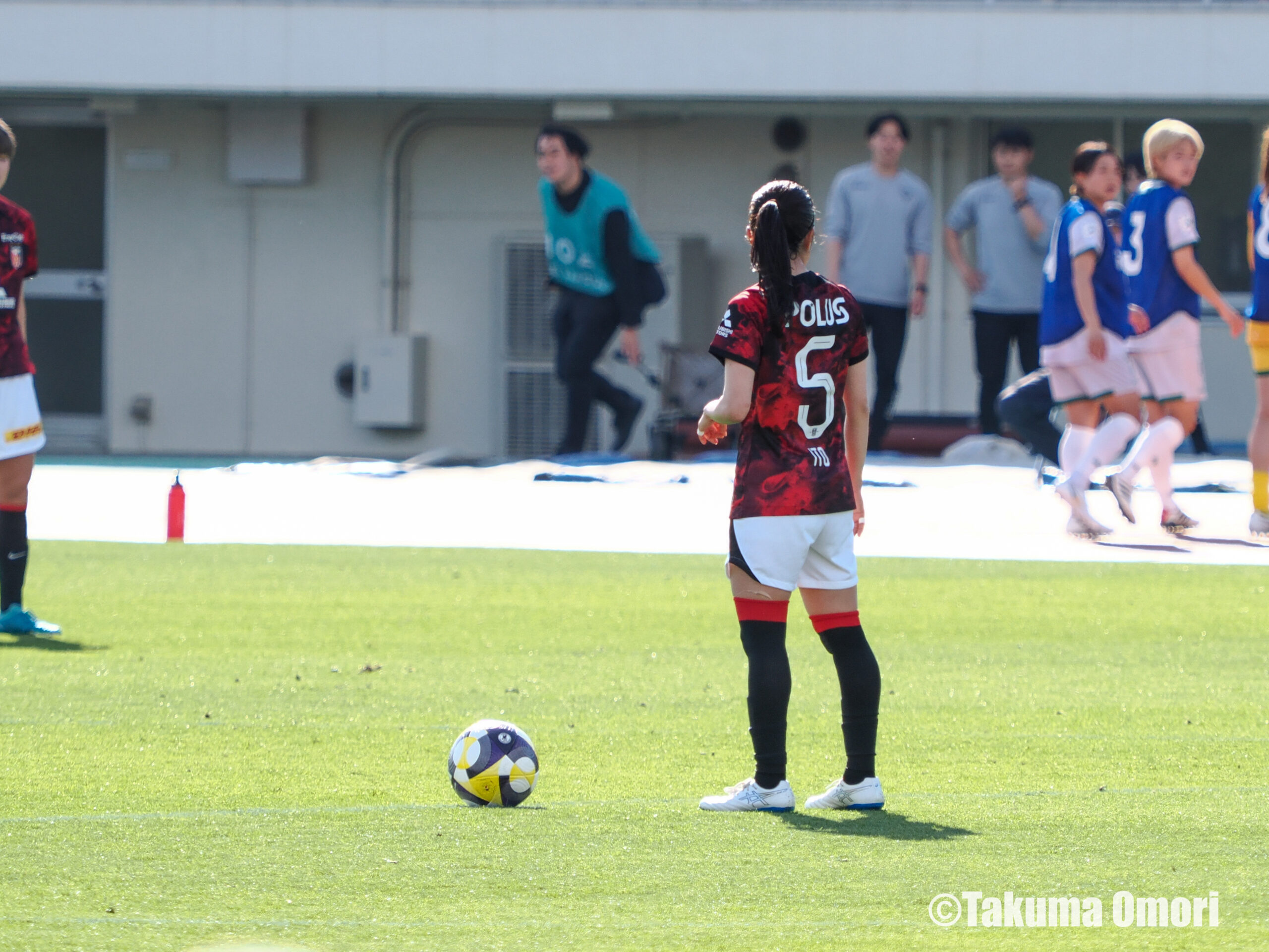 この試合は、浦和がACL出場のために未消化だったカードです。試合前の時点で暫定3位につけていた浦和は、この試合で勝利すれば単独首位に浮上するという状況でした。前節(第17節)から中2日という厳しい日程の中、キャプテンの柴田華絵選手がベンチスタートとなり、代わってキャプテンマークを巻いて出場したのがMF伊藤美紀選手(2013年度卒)です。